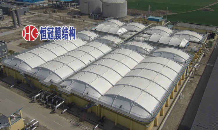 工程介绍:膜面积4750㎡;由于污水站临近于城区,此次改造目的主要是将原有室外敞开式污水站进行膜加盖密封除臭,使其所产生的废气进行集中收集处理;污水站膜加盖密封除臭项目密封工艺采用“反吊膜”,“反吊膜”顾名思义是膜安装在钢构下方,钢结构外漏在反吊膜外,利用膜材本身抗酸碱,耐腐蚀等性能把污水池中废气密......